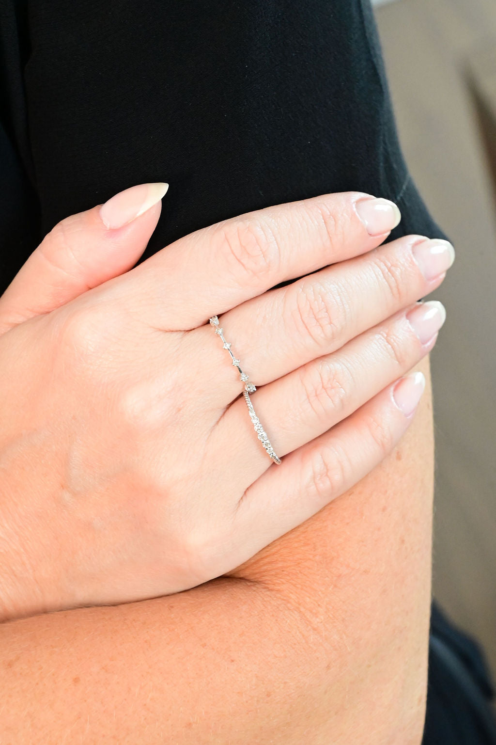 Anel em ouro branco 18k com brilhantes decrescentes.