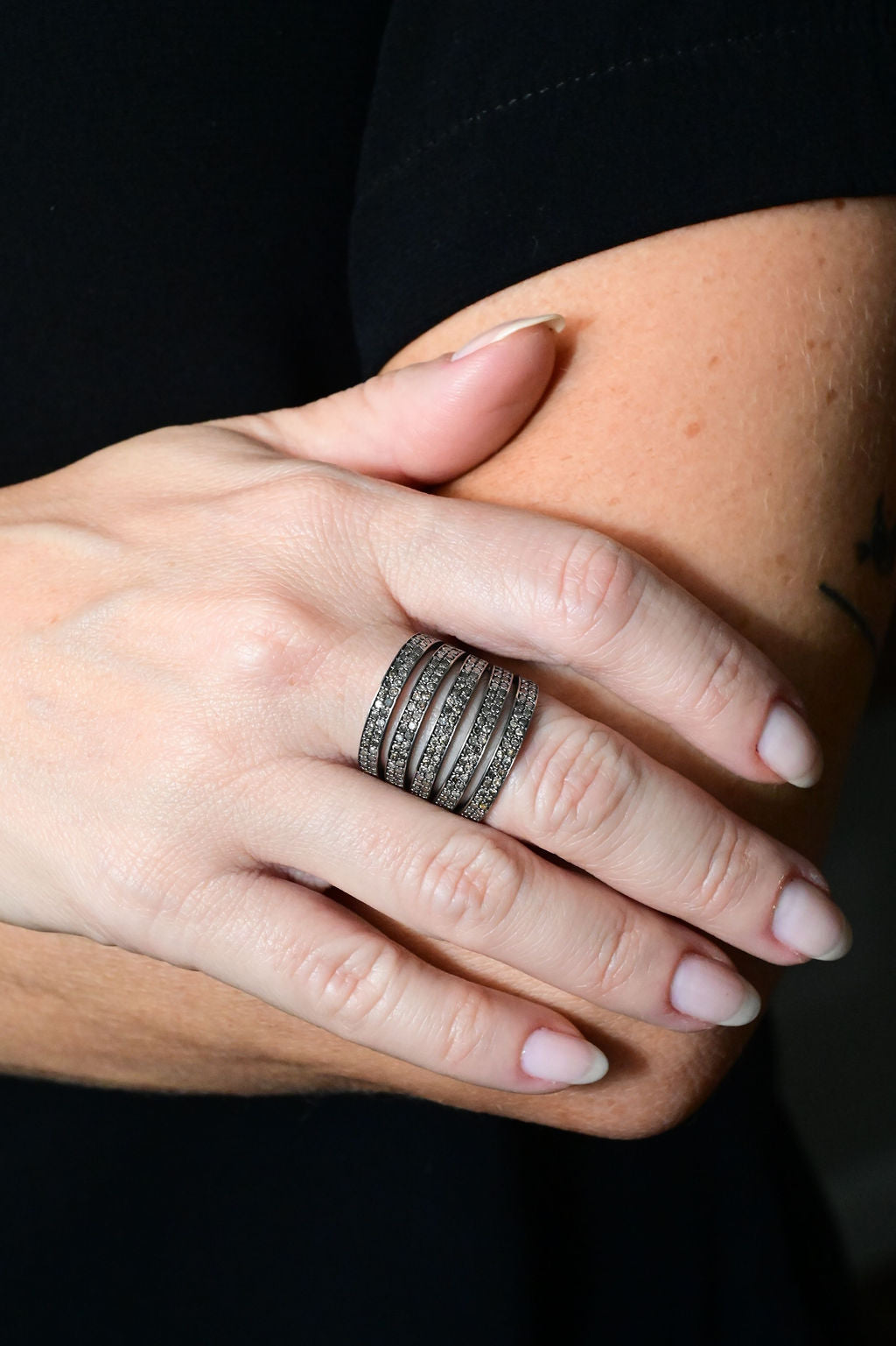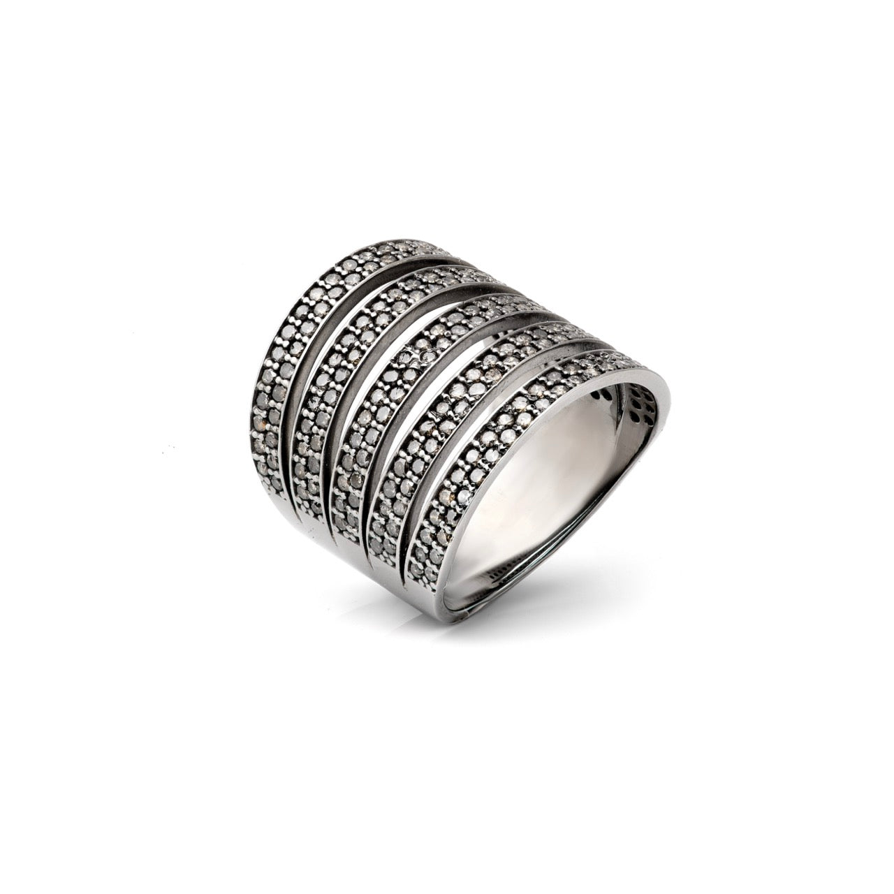 Anel em ouro branco com rodio negro e 1,3ct de diamantes brown.