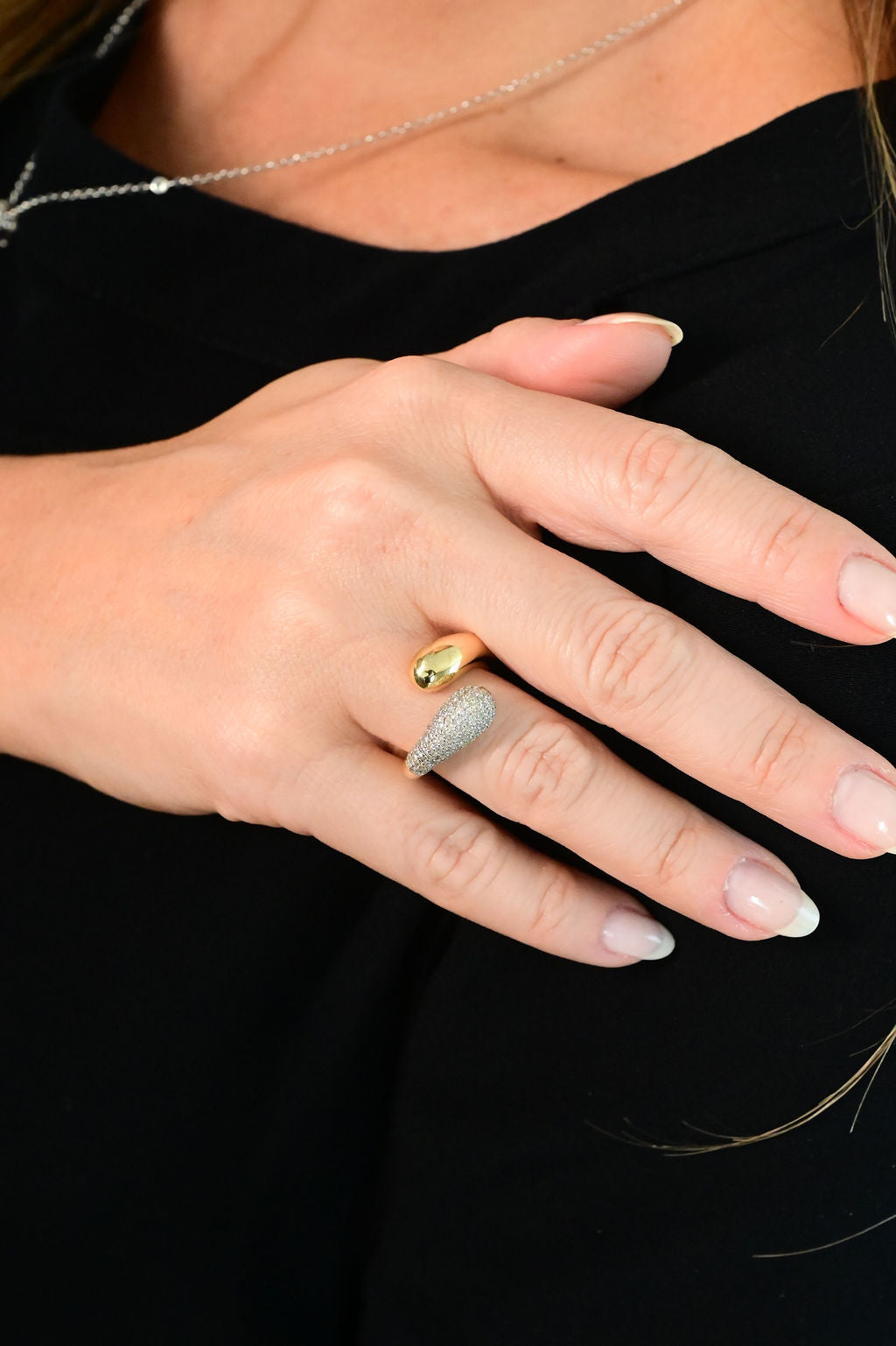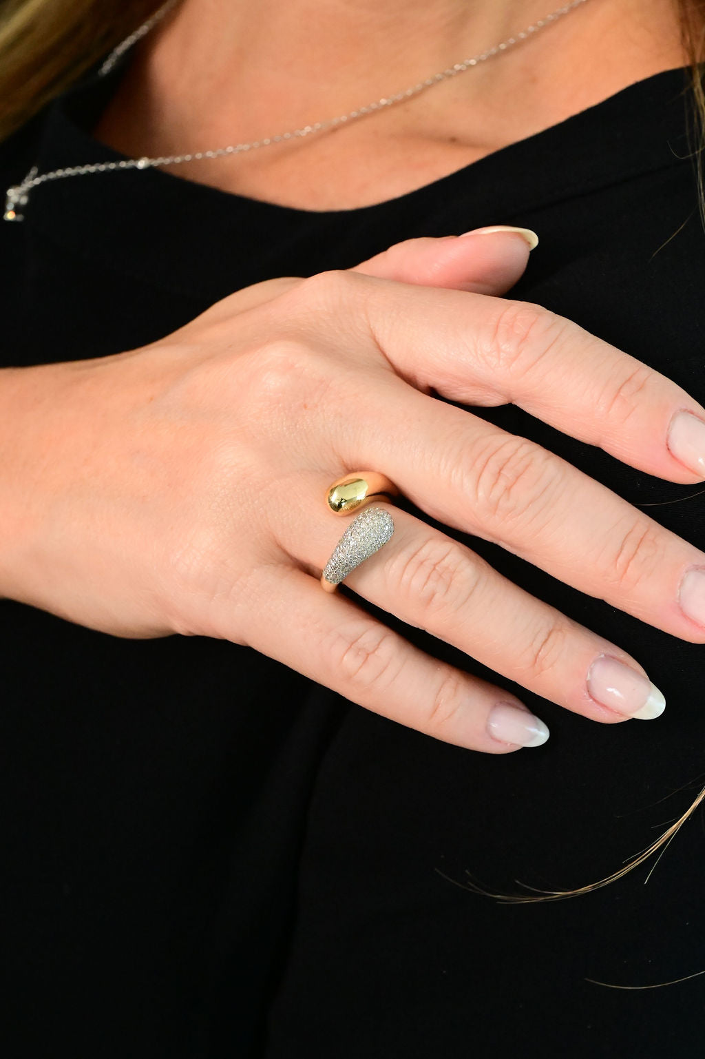 Anel Aura Duo Aberto Pavê
