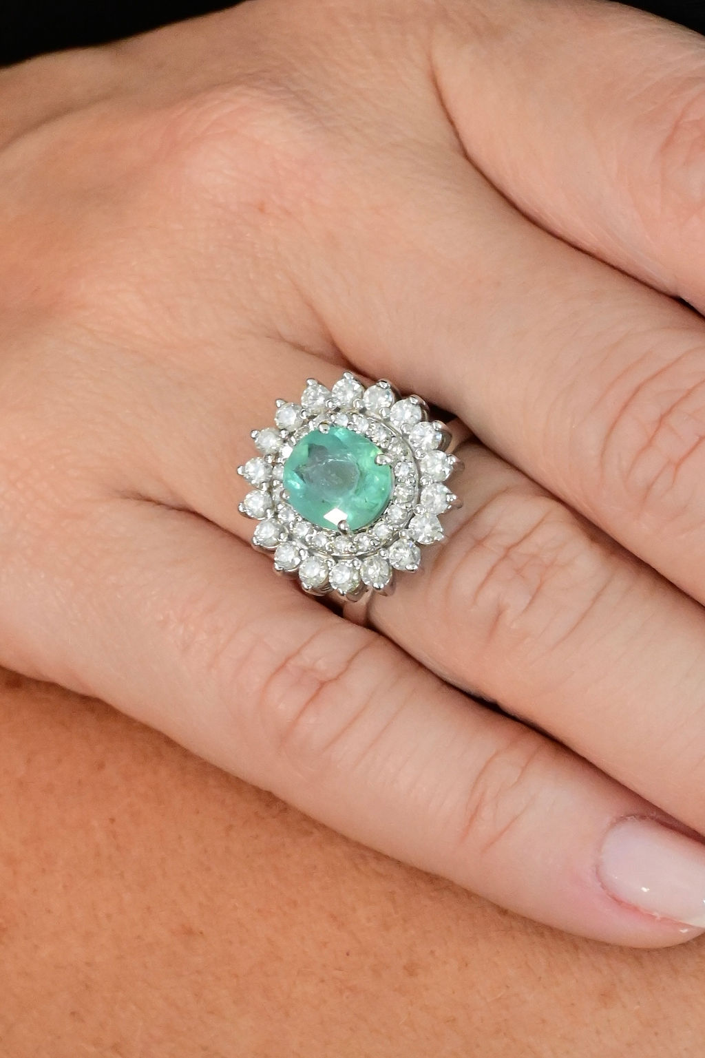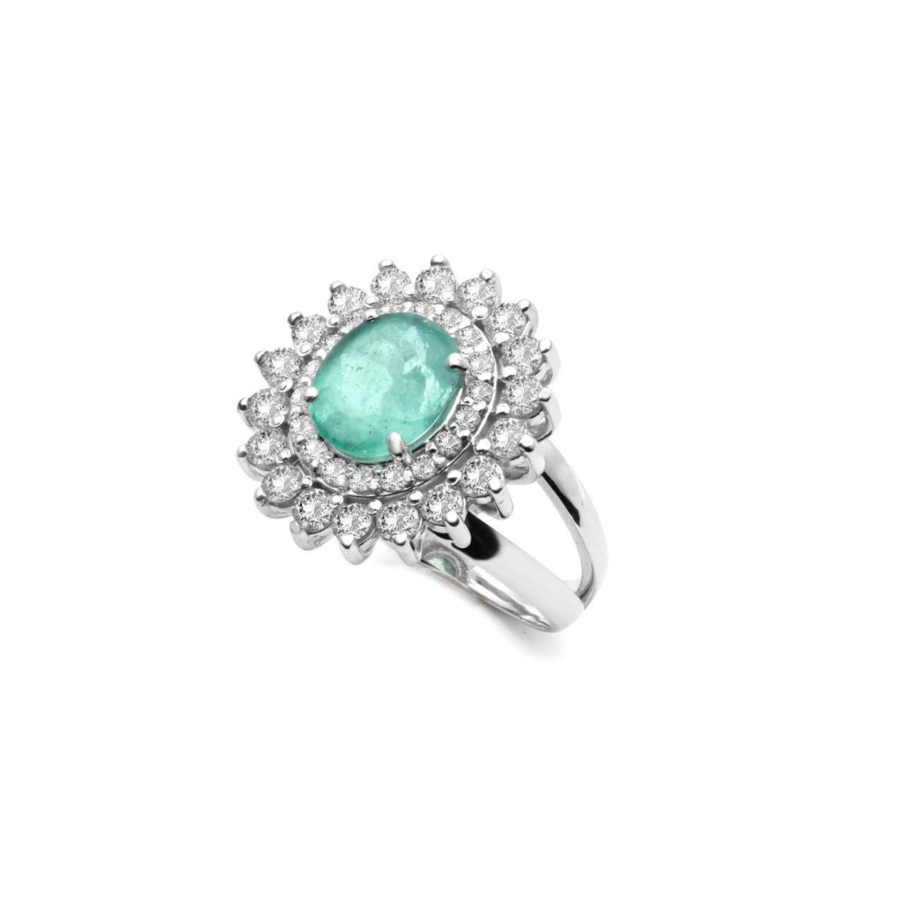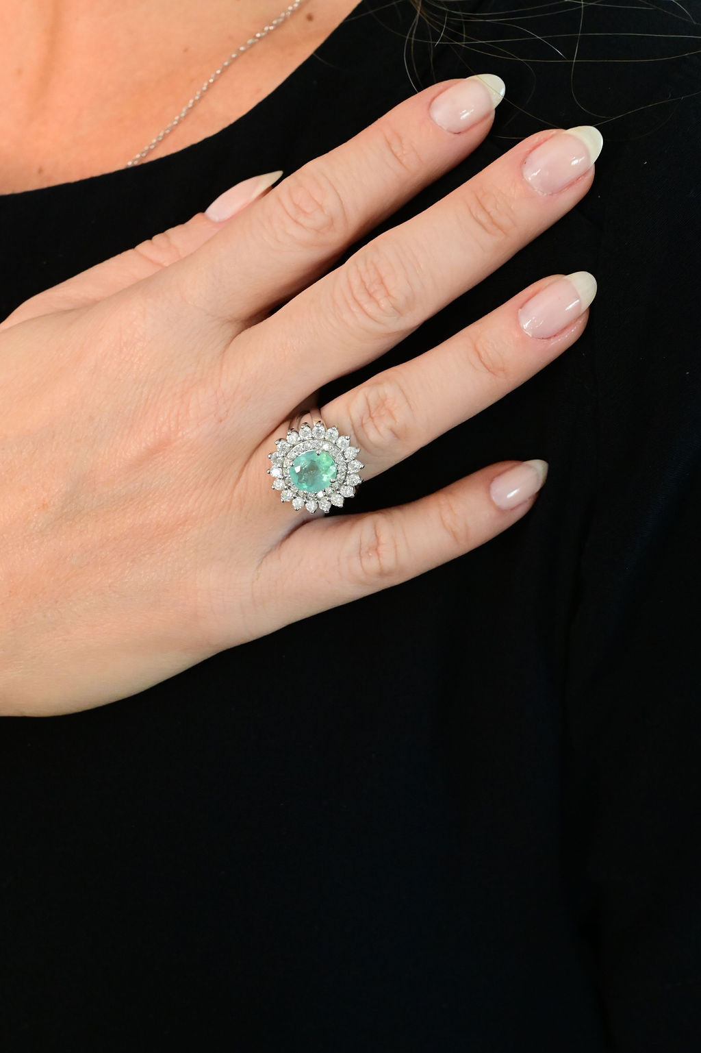Anel em ouro branco 18k com turmalina paraíba e diamantes.