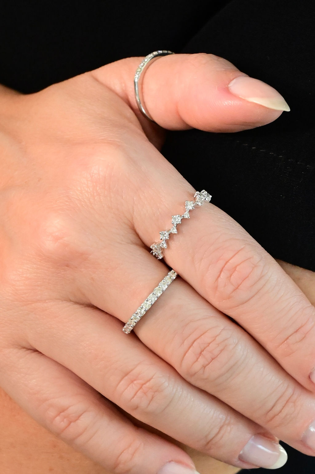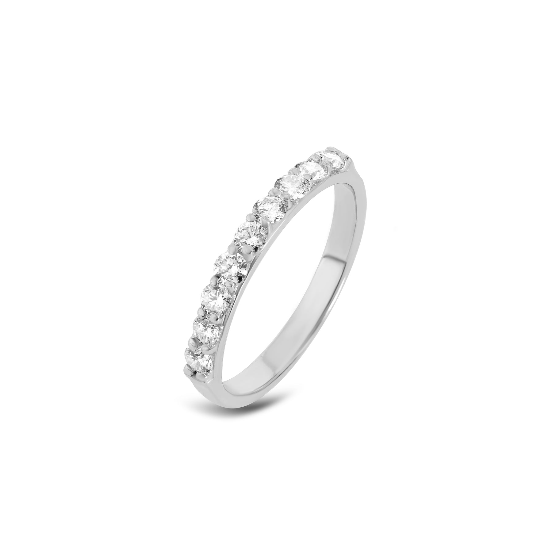 Meia aliança em ouro branco 18k com diamantes de 0,05ct cada.