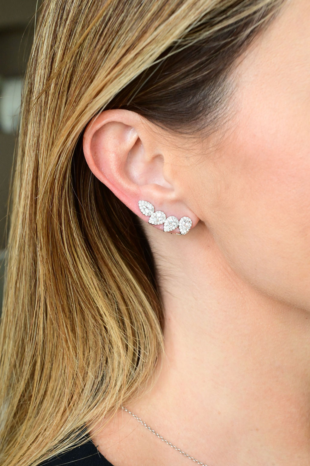 Brinco earcuff em ouro branco 18k com 1,60ct safiras incolores e 0,73ct de brilhantes.