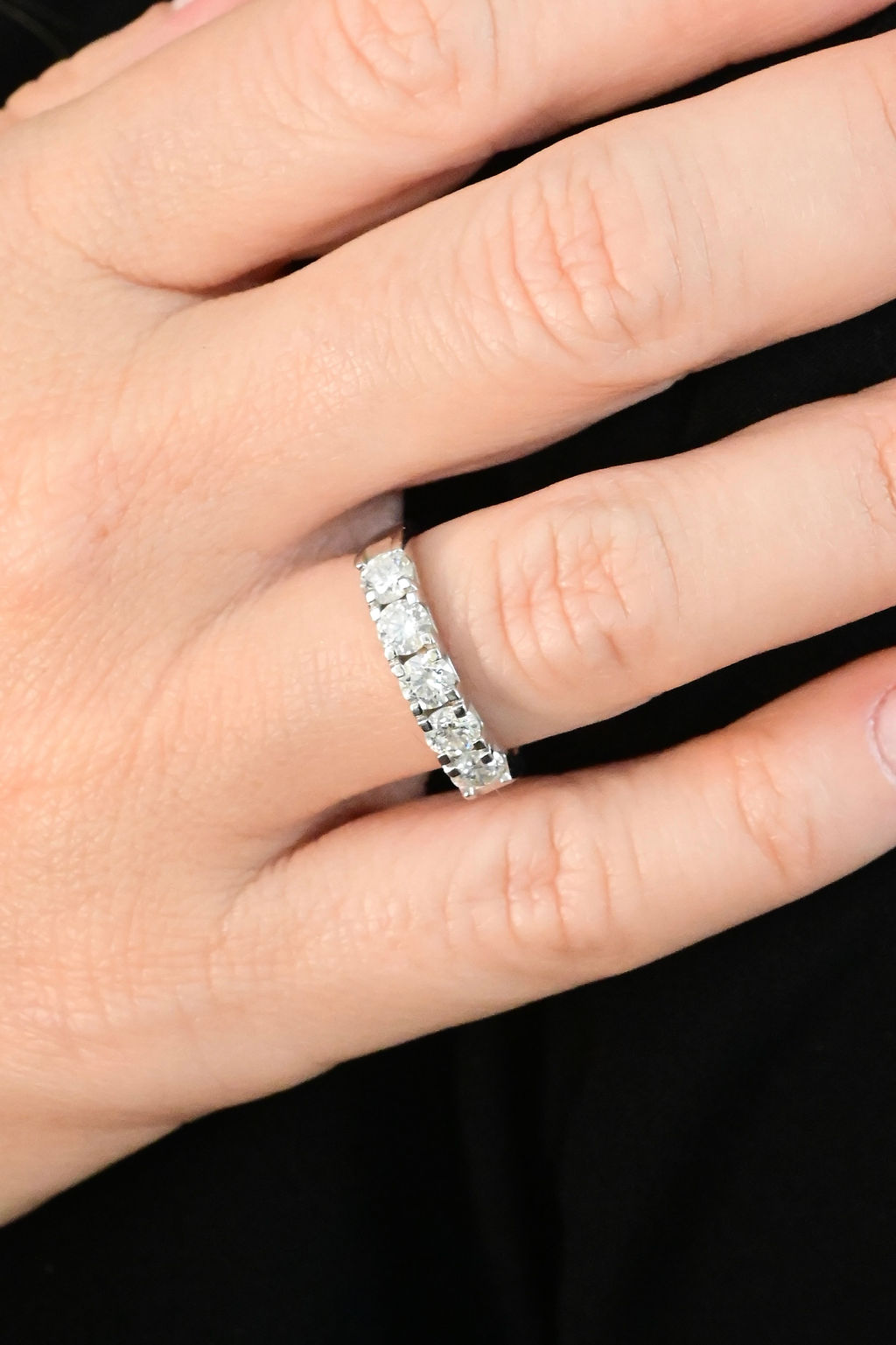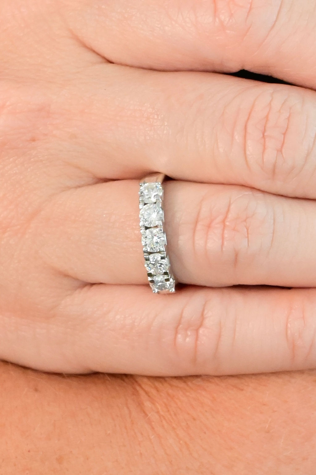 Meia aliança em ouro branco 18k com 5 diamantes com 1,11ct total.